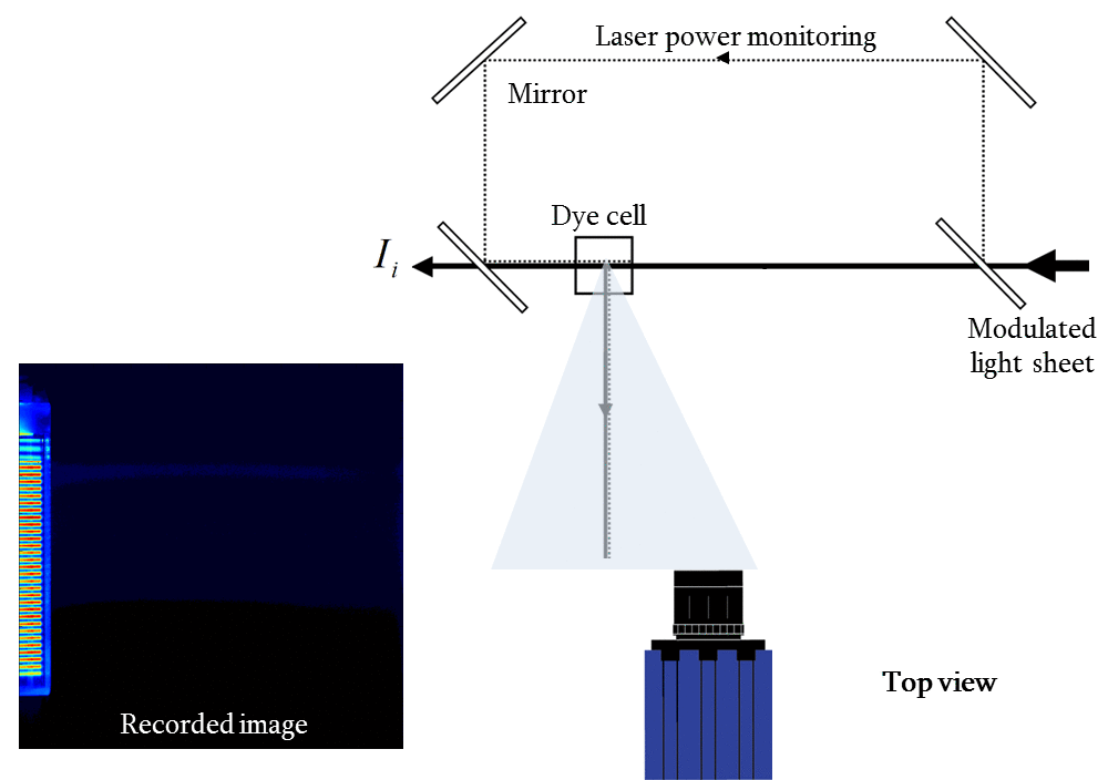 To compensate for light extinction, a fluorescing cuvette is placed on the other side of the spray medium. This allows to measure how much the light was reduced at a particular plane.